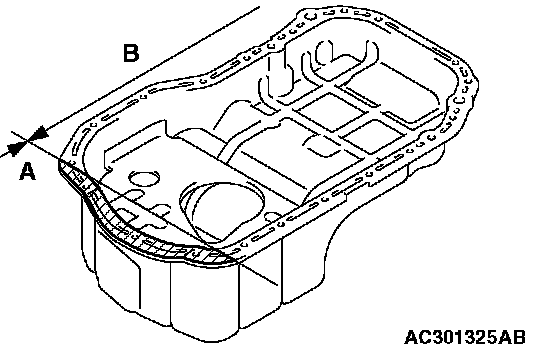 ^ Check the oil pan sealant-coated surface for damage and deformation.