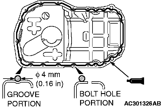 NOTE: Install the engine oil pan within 15 minutes after applying sealant.