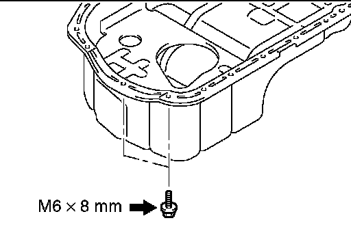 4. Tighten the engine oil pan mounting bolts to the specified torque. Be careful when installing, as the bolts indicated in the illustration have different lengths from the other bolts.