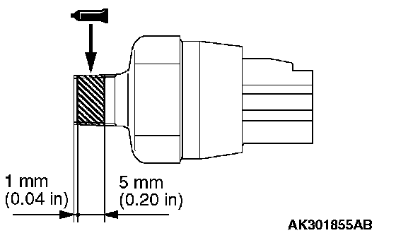 1. Apply a 3 mm (0.12 in.) diameter bead of sealant MITSUBISHI Genuine Part number MD970389 or equivalent to the groove as shown in the illustration.
