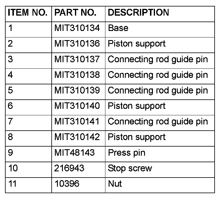 8. Remove the piston assembly from the base. Remove the guide pin and press pin from the assembly.