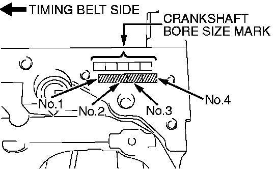 2. If the crankshaft pin outside diameter identification mark is "1," for example, select a bearing whose identification mark is "1 ." If there is no identification color paint on the crankshaft, measure the pin outside diameter and select a bearing appropriate for the measured value.