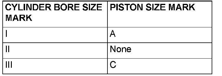 1. When replacing the piston, read off the cylinder bore size mark on the cylinder block as illustrated, and select a piston according to the table shown.
