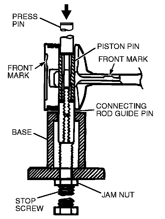 7. Press the piston pin through the connecting rod until the guide pin contacts the stop screw.