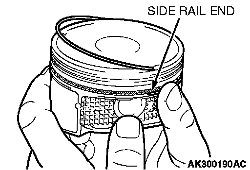 CAUTION: Do not use a piston ring expander when installing the side rail.