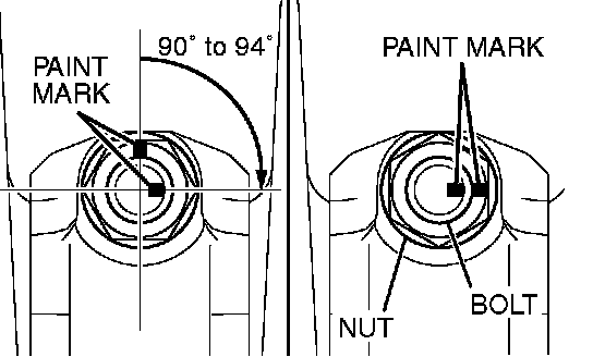 7. Turn the nut 90 to 94 degrees and make sure that the paint marks on the nut and bolt are aligned.