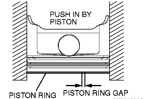 3. Insert the piston ring into the cylinder bore. Force the ring down with a piston, the piston crown being in contact with the ring, to correctly position it at right angles to the cylinder wall. Then, measure the end gap with a feeler gauge. If the ring gap is excessive, replace the piston ring.