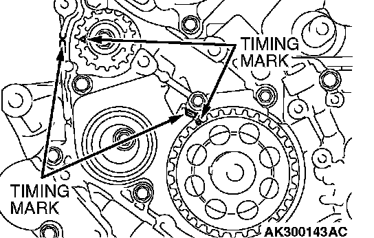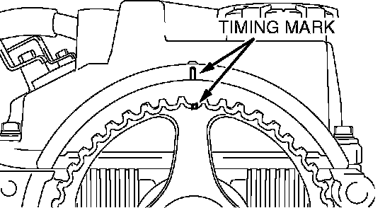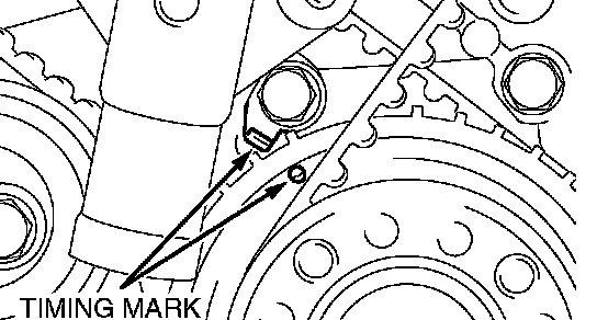 5. Check that timing marks on the sprockets are aligned with the timing marks on the front case.