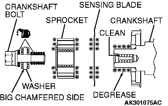 1. Clean and then degrease the contacting surfaces of the crankshaft sprocket, sensing blade and crankshaft.