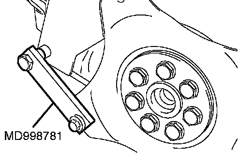 1. Install special tool MD998781 to hold the drive plate.