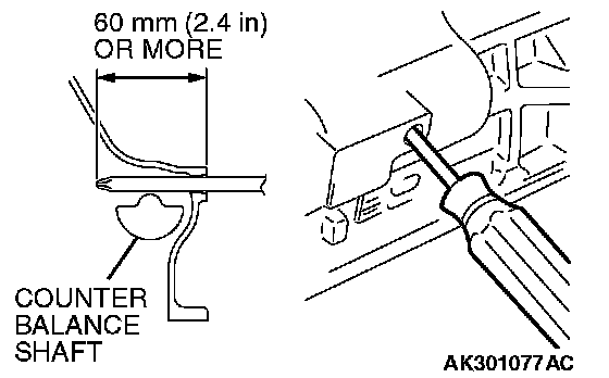 1. Insert a Phillips head screwdriver [shank diameter 8 mm (0.3 in.)] through the plug hole on the left side of the cylinder block to block the left counterbalance shaft.