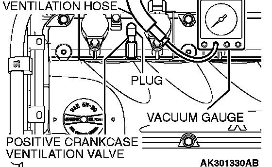 3. Disconnect the ventilation hose from the Positive Crankcase Ventilation (PCV) valve, and connect a vacuum gauge to the ventilation hose.