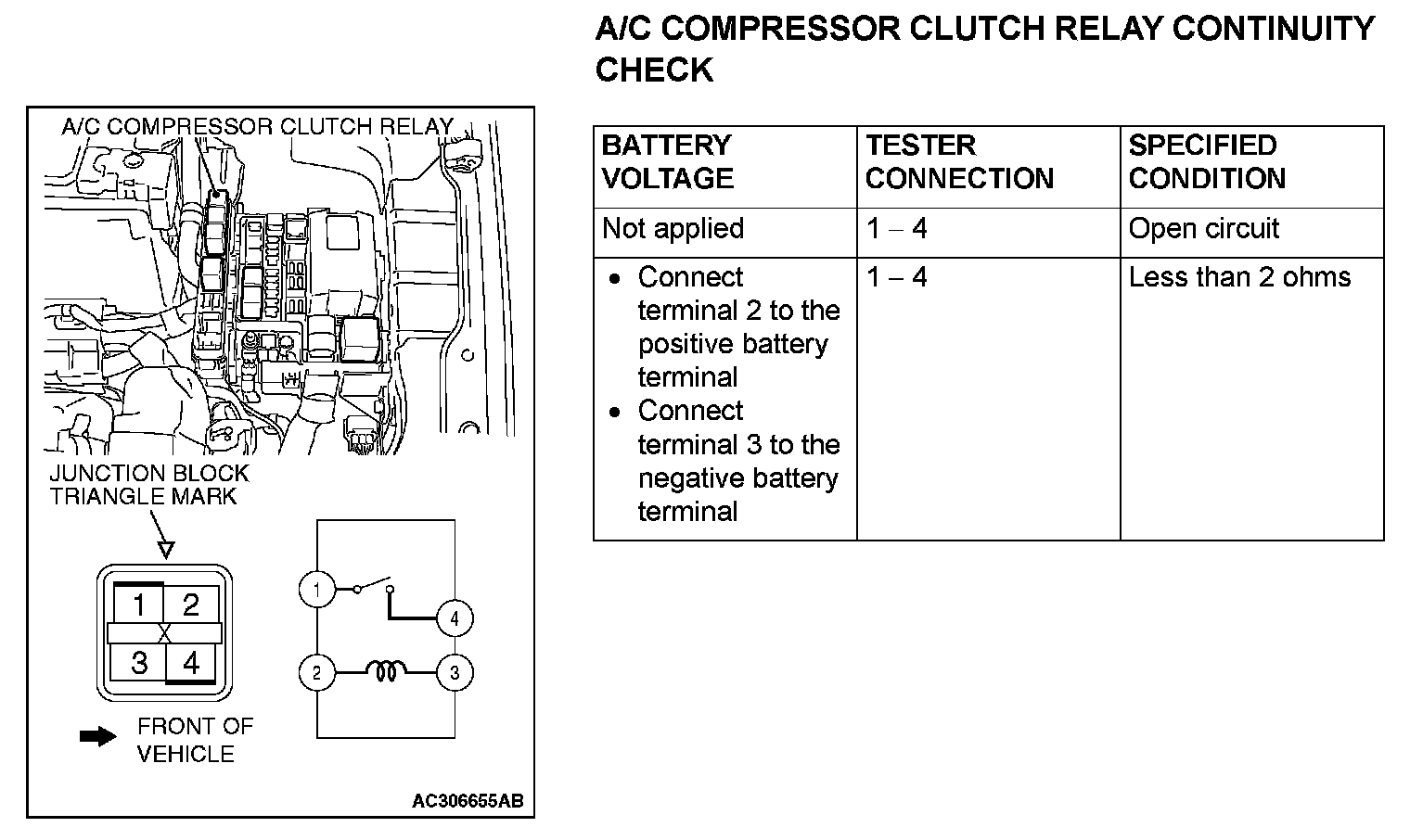 A/C Compressor Clutch Relay Continuity Check: