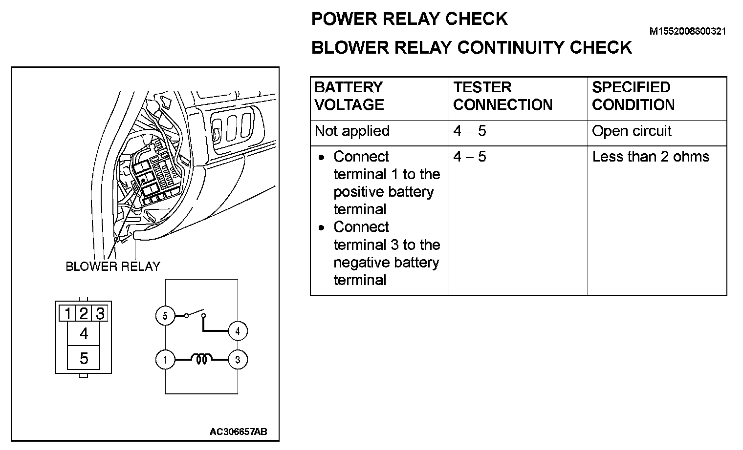 Blower Relay Continuity Check: