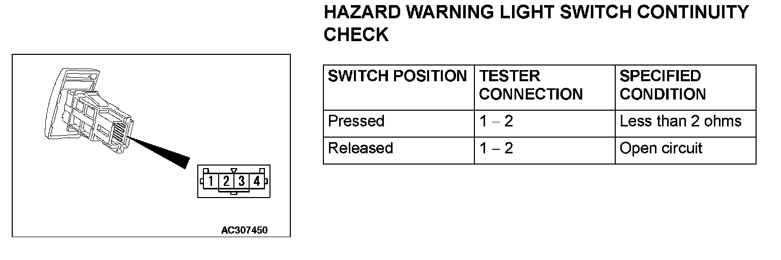 Hazard Warning Light Switch Continuity Check: