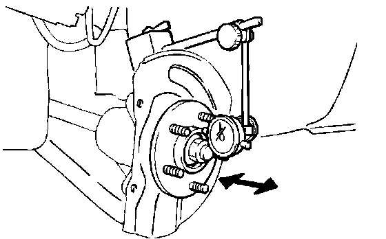 3. Attach a dial gauge as shown in the illustration, and then measure the end play while moving the hub in the axial direction.