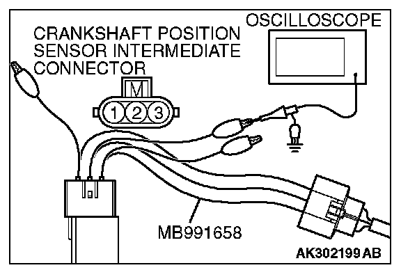 3. Disconnect the crankshaft position sensor intermediate connector, and connect the test harness special tool (MB991658) between the separated connector.