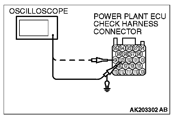 3. Connect the oscilloscope to check harness terminal No. 103. (Check the crankshaft position sensor signal wave pattern.)