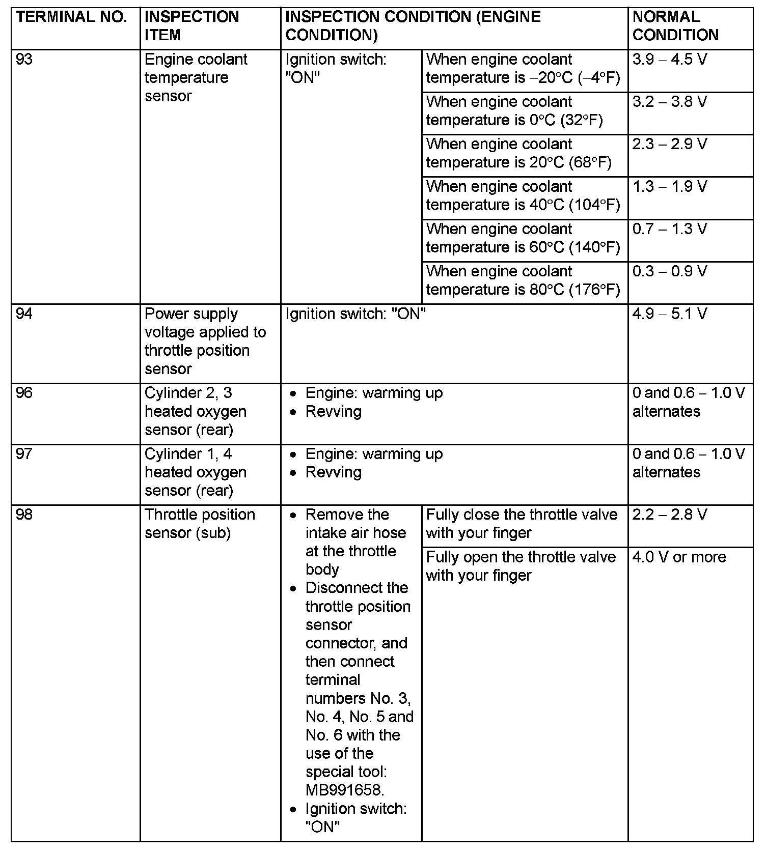 Check Harness Special Tool MB991923 Connector Terminal Arrangement Part 4: