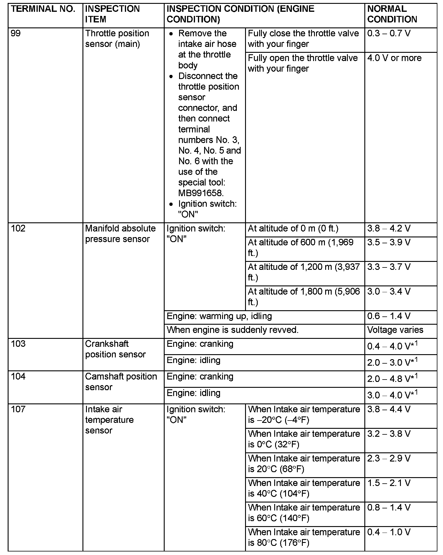 TERMINAL VOLTAGE CHECK CHART