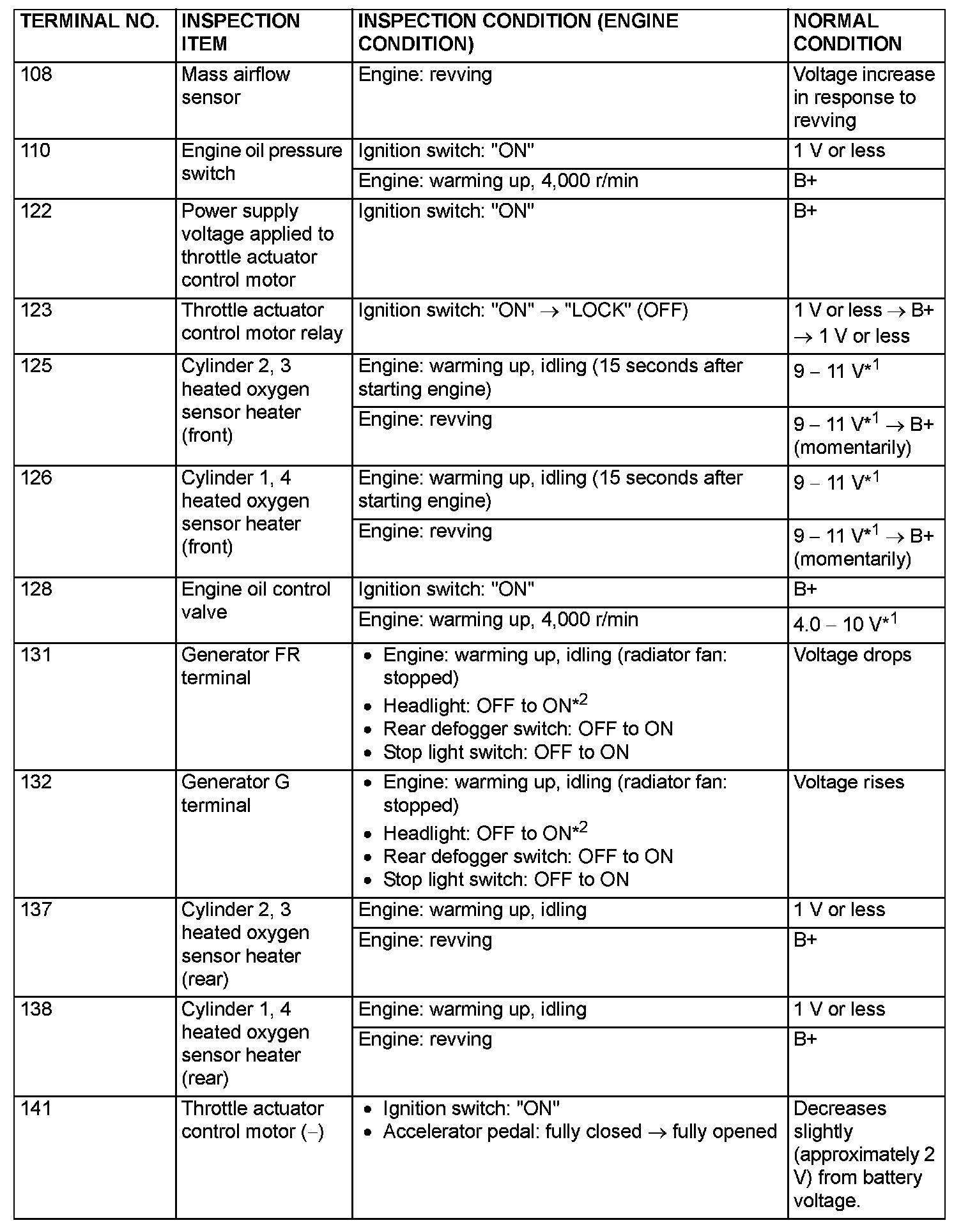 NOTE: *2: Vehicles for Canada, the headlight, taillight, etc. remain lit even when the lighting switch is in "OFF" position but this is no problem for checks.