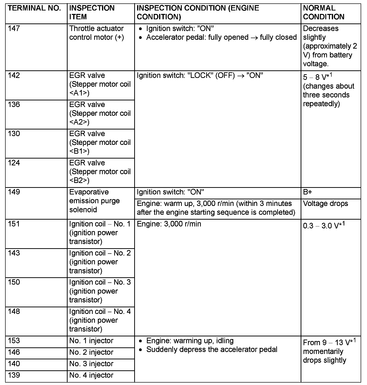 NOTE: *1: The average voltage through an analog voltmeter is described. (because the average voltage is too stable to be shown on a digital voltmeter).