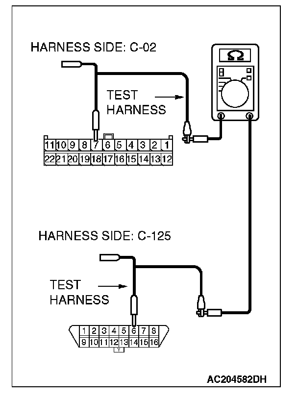 1. Disconnect joint connector (3) C-02, and measure the resistance between the wiring harness side connector of joint connector (3) C-02 and wiring harness side connector of data link connector C-125.