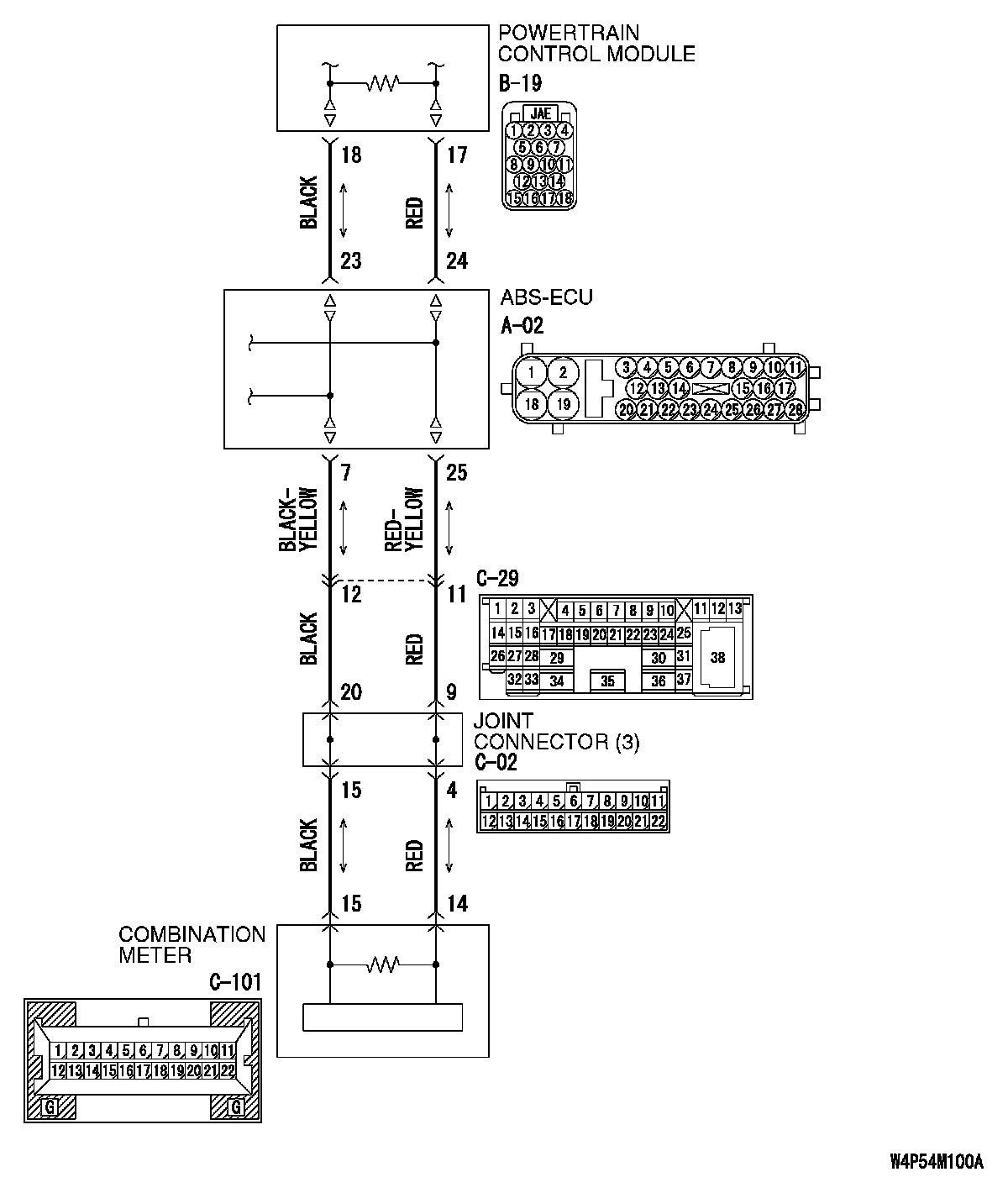 STEP 2. Check the CAN bus lines between intermediate connector C-29 and the ABS-ECU. Measure the resistance between intermediate connector C-29 and ABS-ECU connector A-02.
