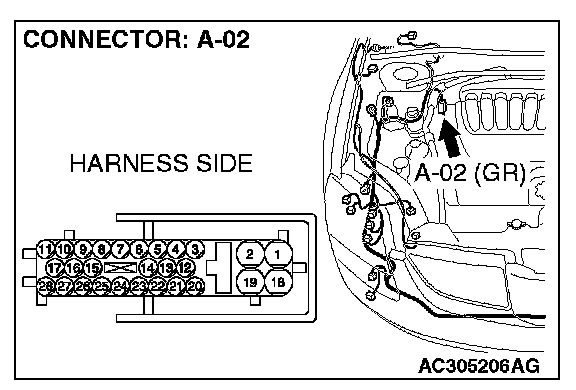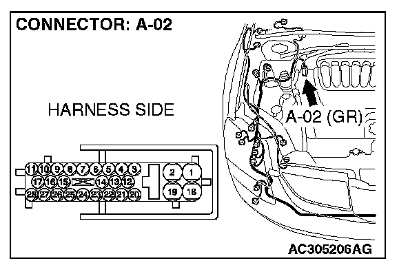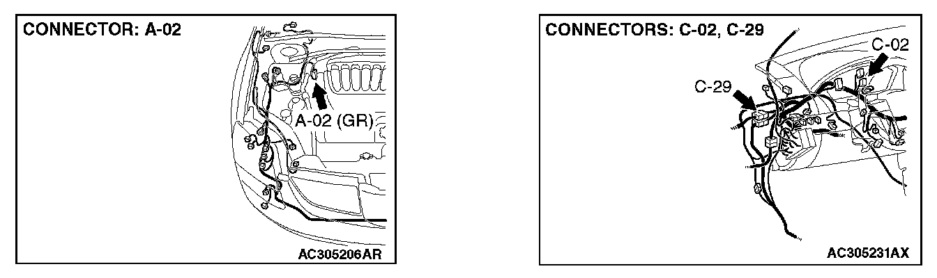 STEP 3. Check joint connector (3) C-02 for loose, corroded or damaged terminals, or terminals pushed back in the connector.