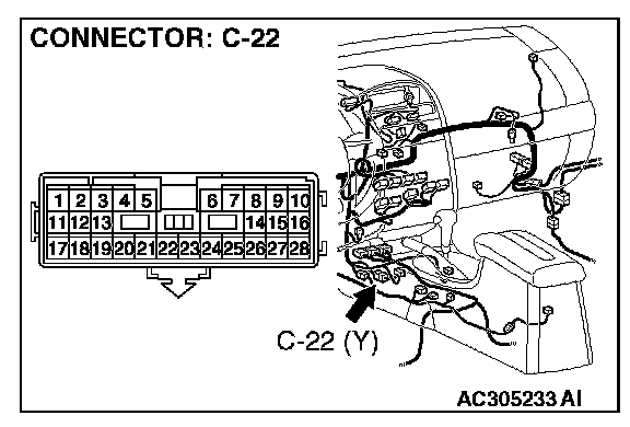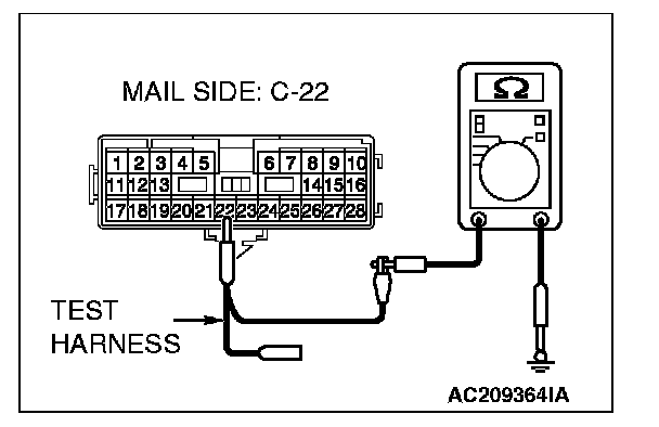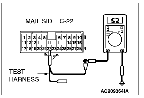 1. Disconnect intermediate connector C-22, and measure the resistance at the male side (at floor wiring harness side).