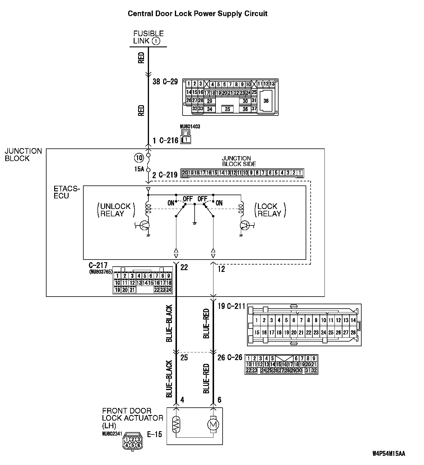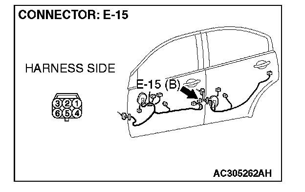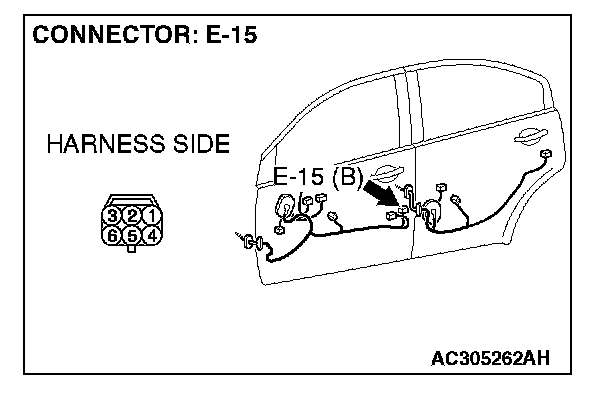 STEP 5. Check ETACS-ECU connectors C-217 and front door lock actuator (LH) connector E-15 for loose, corroded or damaged terminals, or terminals pushed back in the connector.