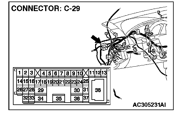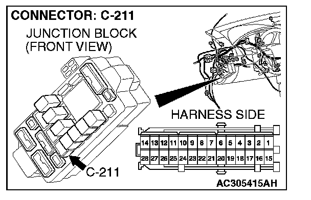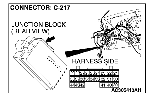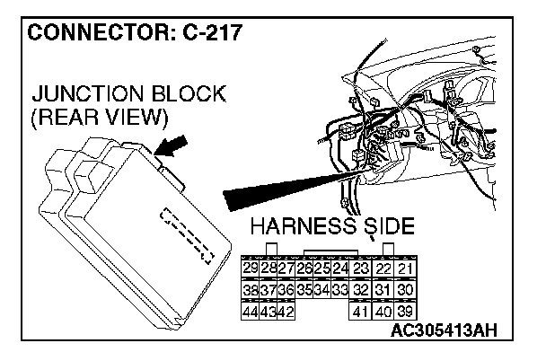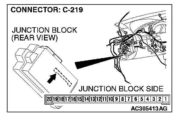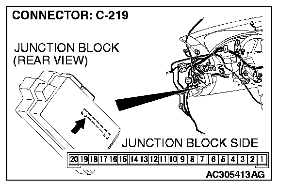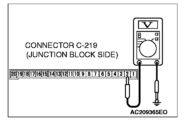 1. Disconnect ETACS-ECU connector C-219 and measure the voltage available at the junction block side of the connector.
