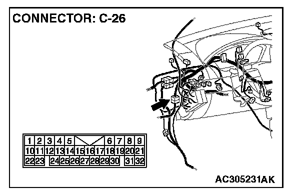 NOTE: Also check intermediate connector C-26 for loose, corroded, or damaged terminals, or terminals pushed back in the connector. If intermediate connector C-26 is damaged, repair or replace the damaged component(s) as described in Harness Connector Inspection.