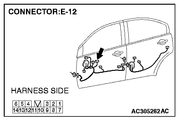 1. Disconnect power window main switch connector E-12 and measure the voltage available at the harness side of the connector.