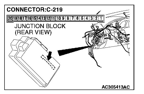 STEP 13. Check ETACS-ECU connector C-219 for loose, corroded or damaged terminals, or terminals pushed back in the connector.