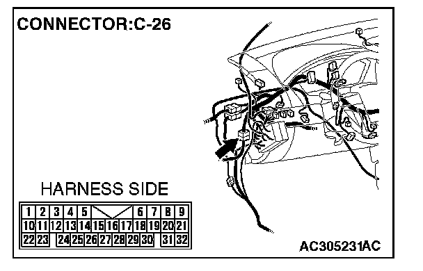 NOTE: Also check intermediate connectors C-26 for loose, corroded or damaged terminals, or terminals pushed back in the connectors. If intermediate connector C-26 is damaged, repair or replace the damaged component(s) as described in Harness Connector Inspection.