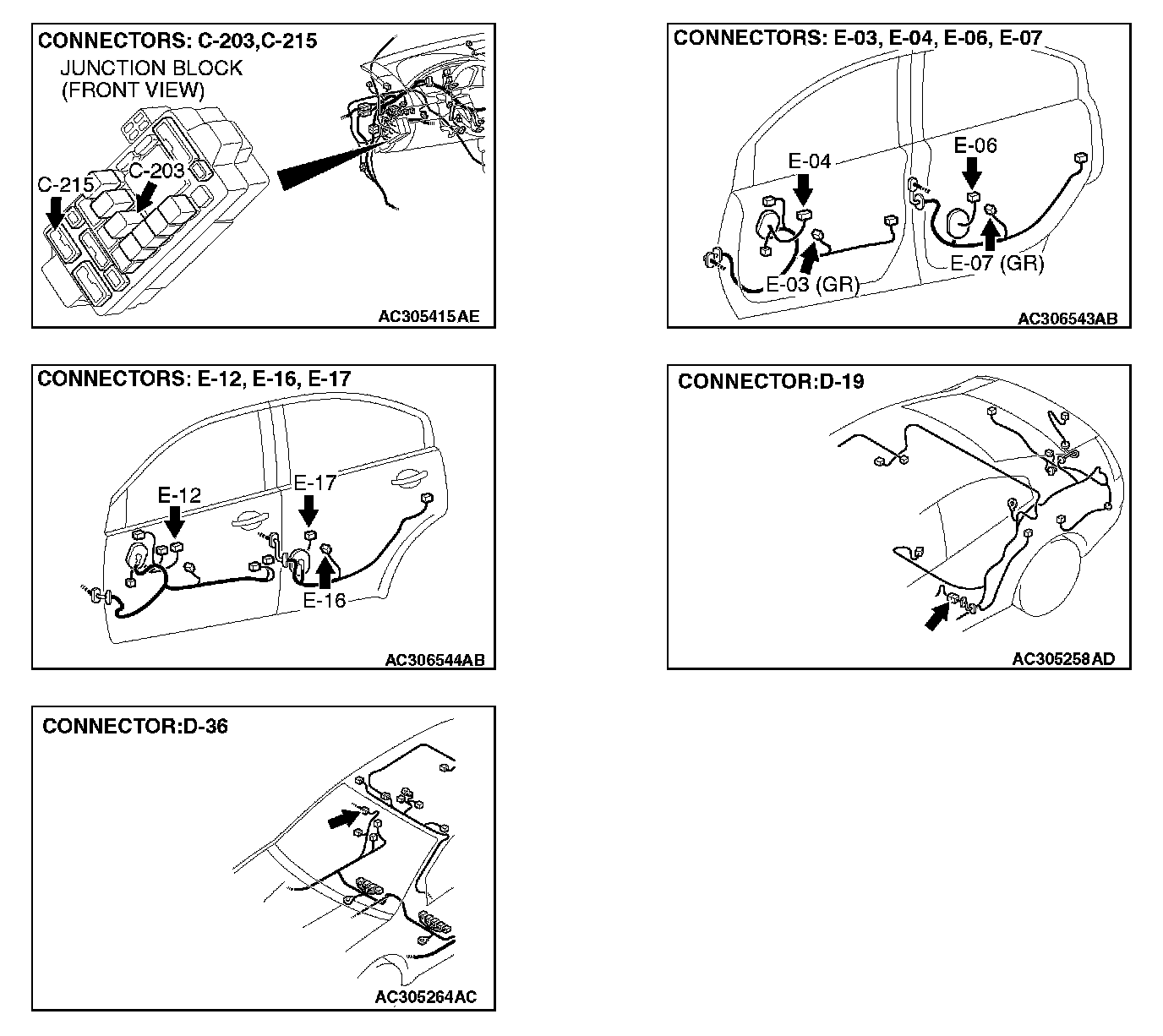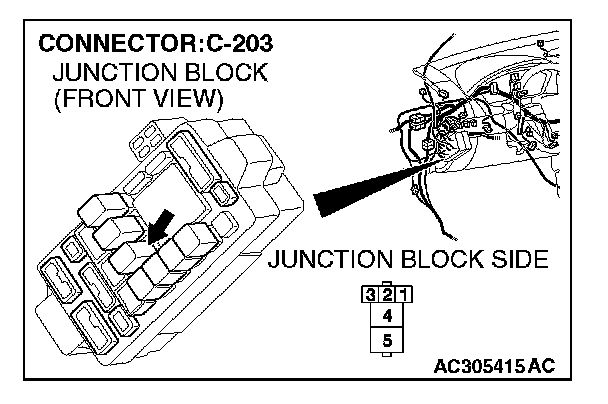 STEP 9. Check power window relay connector C-203 for loose, corroded or damaged terminals, or terminals pushed back in the connector.