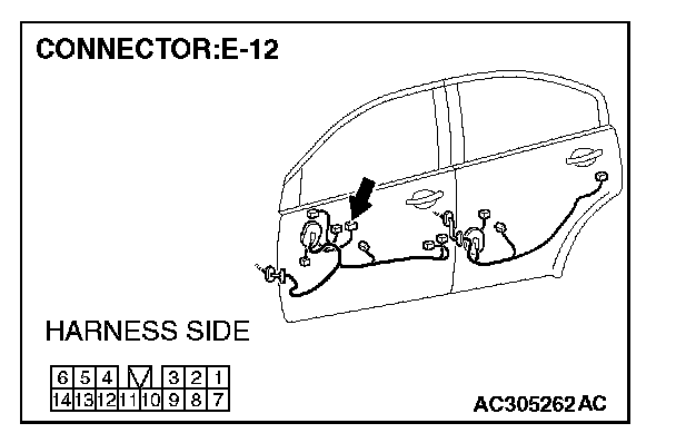 STEP 12. Check the wiring harness between power window main switch connector E-12 (terminals 3 and 11) and front power window sub switch connector E-04 (terminals 8 and 5).
