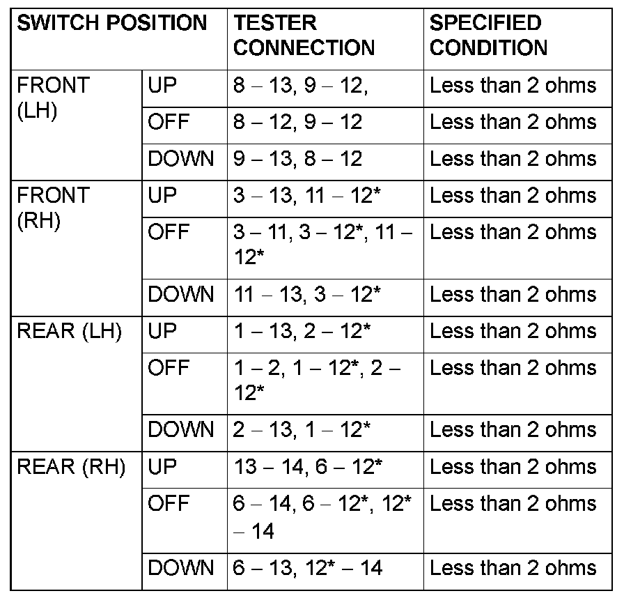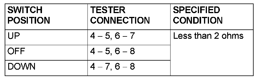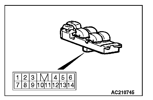 STEP 2. Check each switch on the power window main switch for continuity.