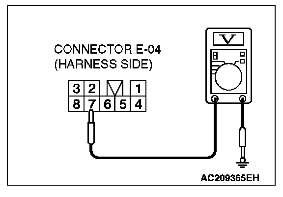 STEP 8. Check the battery power supply circuit to the front power window sub switch. Measure the voltage at front power window sub switch connector E-04.