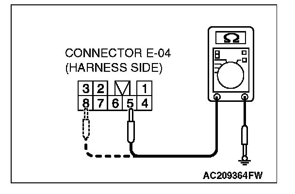 2. Measure the resistance value between terminal 5 and ground, and also between terminal 8 and ground.