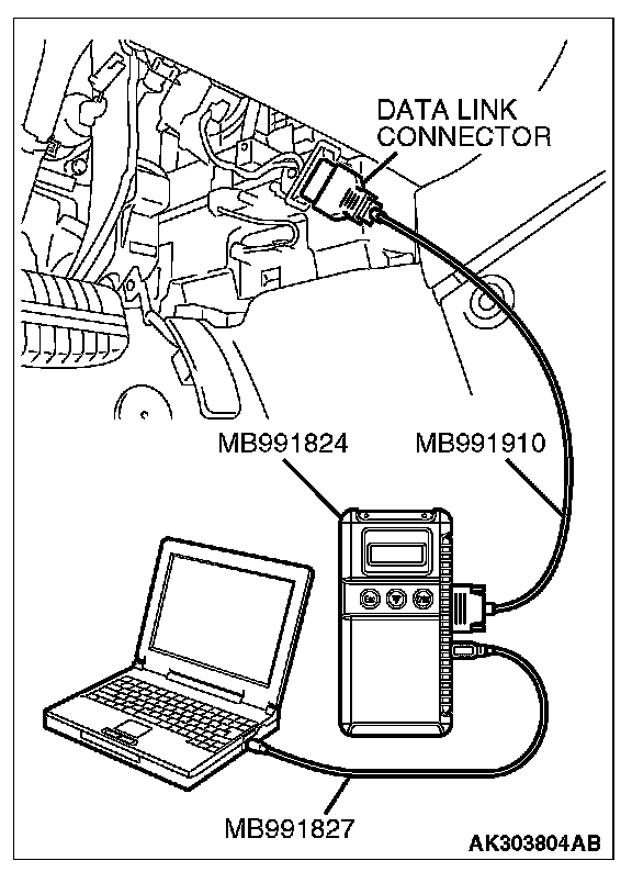 1. Connect scan tool MB991958 to the data link connector.