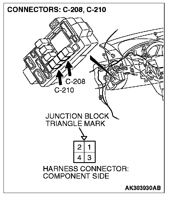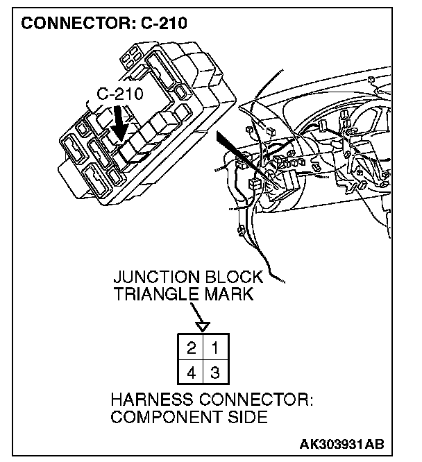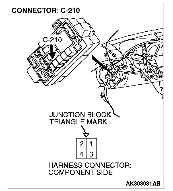 1. Disconnect the connector C-210 and measure at the harness side.