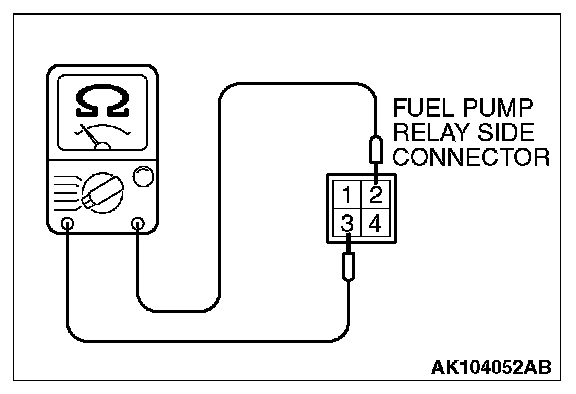 2. Check for continuity between the each fuel pump relay terminals No. 2 and No. 3.