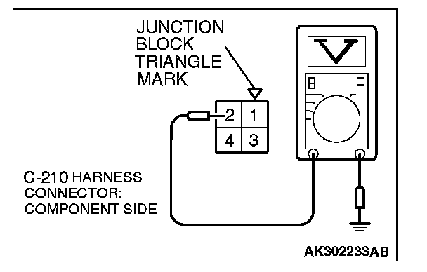 STEP 5. Measure the power supply voltage at fuel pump relay 1 harness side connector C-210.