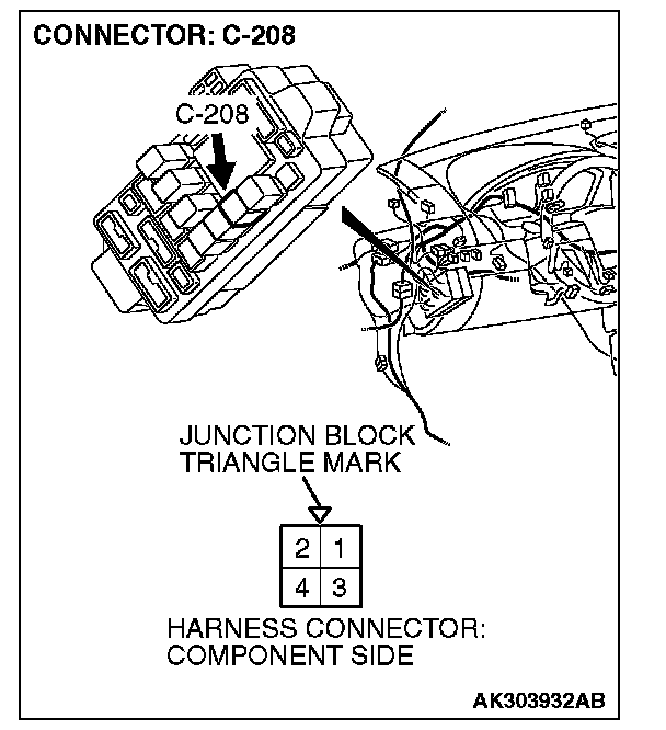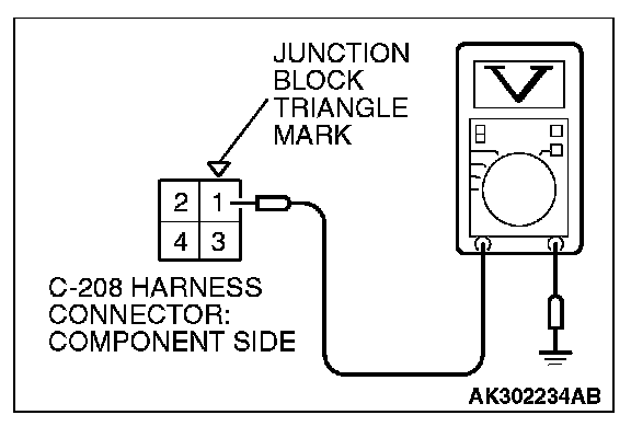 1. Disconnect the connector C-208 and measure at the harness side.