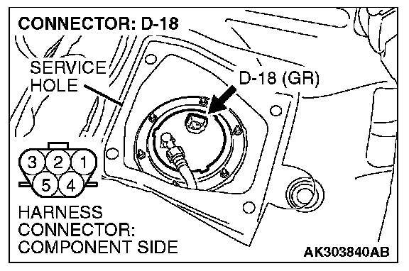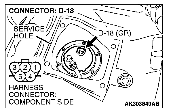 1. Disconnect the connector D-18 and measure at the harness side.