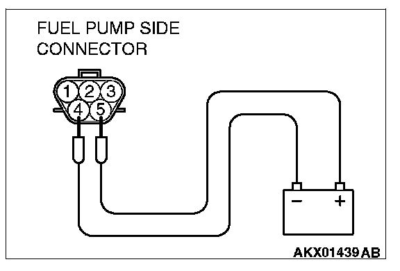 2. Use jumper wires to connect fuel pump connector terminal No. 5 to the positive battery terminal and terminal No. 4 to the negative battery terminal.