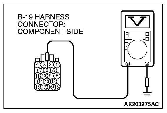STEP 14. Measure the power supply voltage at PCM connector B-19.