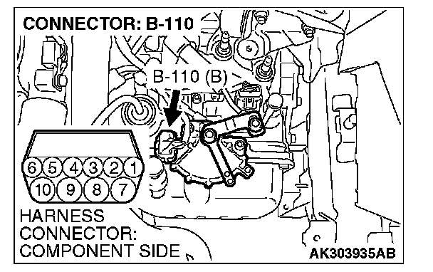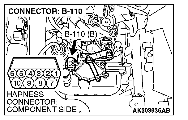 1. Disconnect the connector B-110 and measure at the harness side.